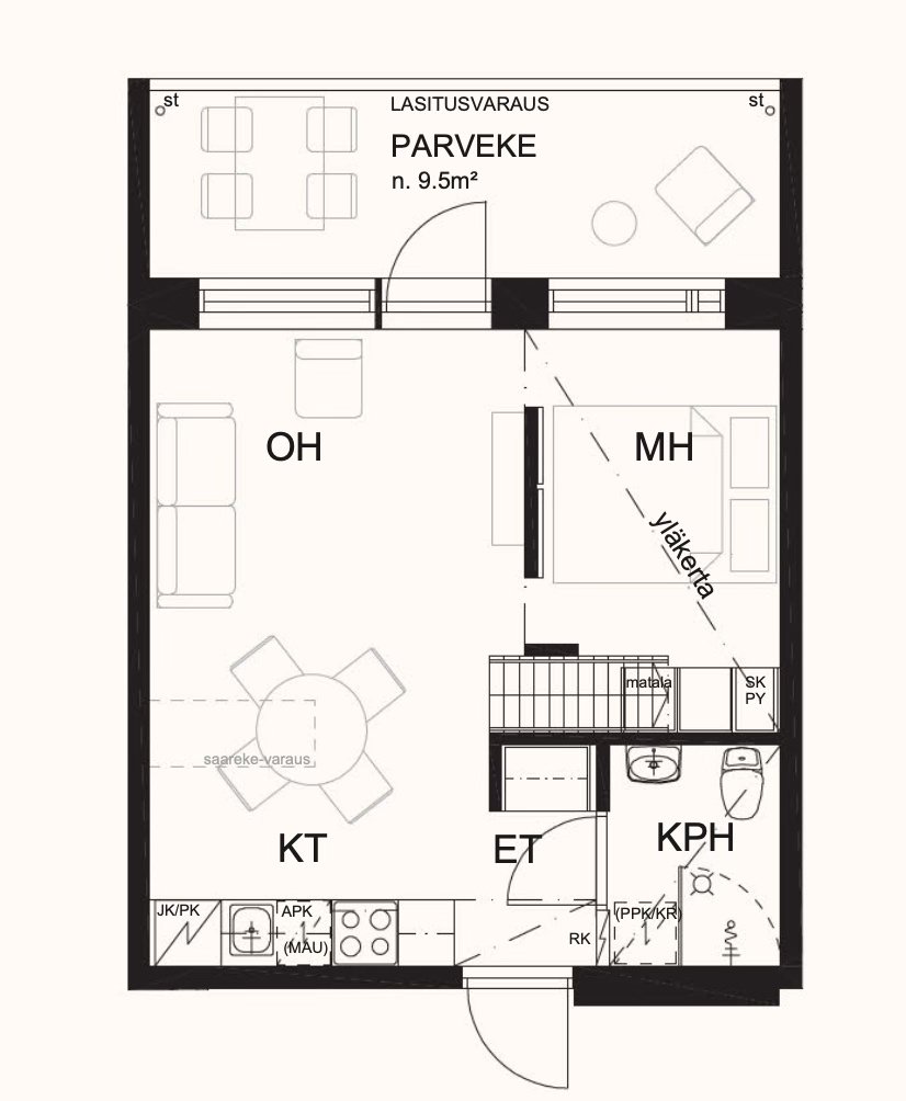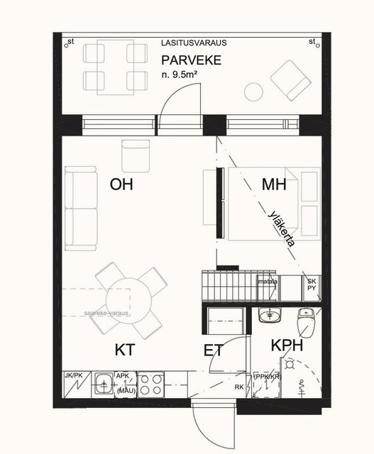 - ALAKERTA 33,0 M2 + YLÄKERTA 7,0 M2 + Parveke 9,5 m2