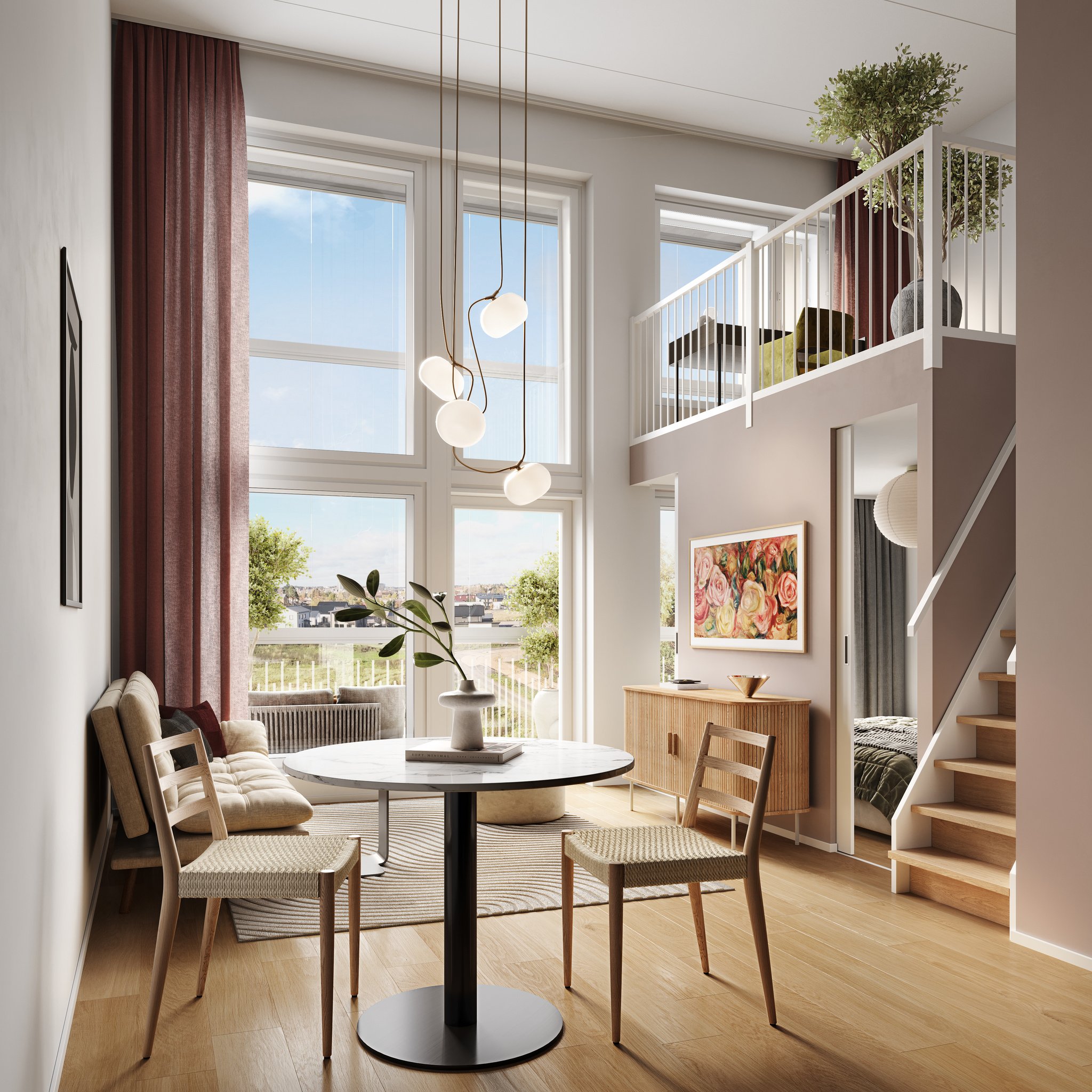Ylimmän kerroksen LOFT-kaksio huikeilla näkymillä