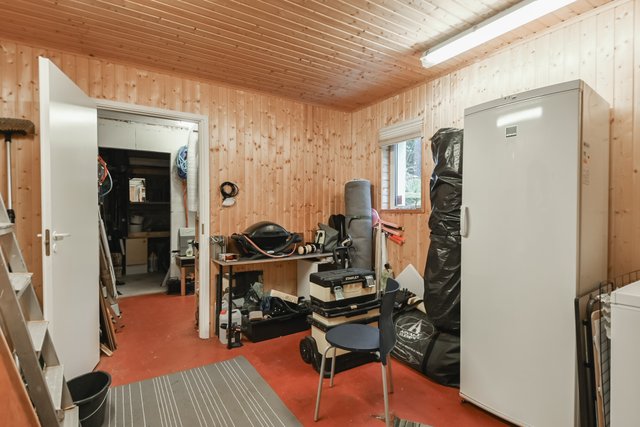 - Vaatehuone, kylmä ulkovarasto, kaapistot, seinäkaapit ja autotalli joka harrastus-/varastotilana