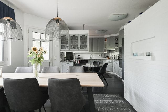 Kodin sydämenä toimii iso varaava puulämmitteinen leivinuuni keittiössä, joka tuo lämpöä ja tunnelmaa. Korkeasta olohuoneessa avautuu näkymä vehreään pihaan. Talossa on kolme makuuhuonetta, Kaksi erillistä wc:tä sekä takkahuone.