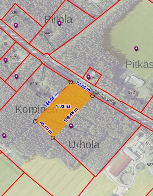 - Käyttötarkoitus: tontti, rakennuspaikka. Määräala tilasta Kotisaari RN:o 4:160, ostaja vastaa määräalan lohkomiskuluista, lopullinen pinta-ala määrittyy lohkomistoimituksessa. -Suunnittelutarveratkaisu ennen rakennuslupaa -Osayleiskaavassa AP-merkintä (asuinpientalojen alue). Rakentaminen osayleiskaavan mukaista/rakentaminen toteuttaa yleiskaavaa. -Rakentamisen edellytys olisi Elyn liittymäluvan saaminen Vähäkankaantielle (suosituksena rakennuspaikkojen yhteinen liittymä) -977-401-4-144 navetan suojaetäisyys huomioitava. Suositellaan rakennuspaikkojen/rakennusten sijoittamista mahdollisimman etäälle navetasta. -Asiassa on huomioitava maatilan nykyinen ja mahdollinen tuleva toiminta.