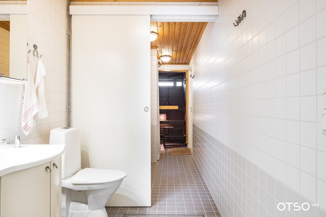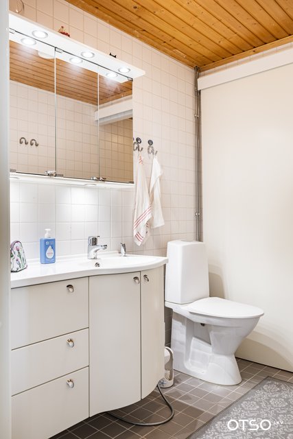 - WC-istuin, suihku, lattialämmitys, peilikaappi, pesuallas, allaskaappi, ja bidee-suihku