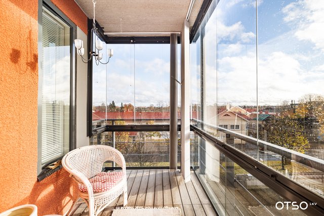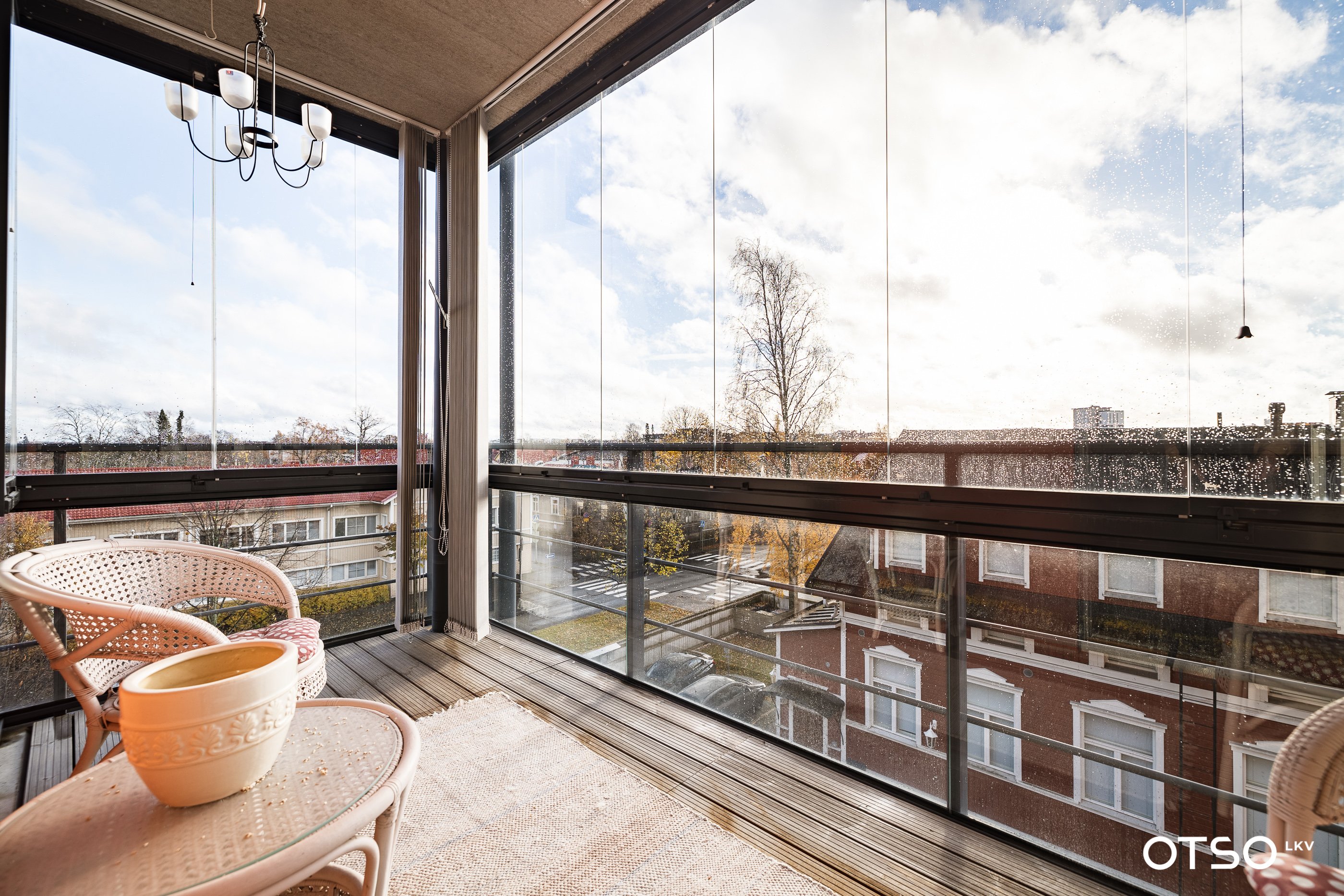 Tämä valoisa ja viihtyisä kolmio sijaitsee persoonallisella paikalla ydin keskustassa, As Oy Porin Ilmarinhovissa, vuonna 2006 valmistuneessa talossa. Kulmahuoneistossa on 74 neliötä 4. kerroksessa ja iso lasitettu parveke verhoineen, joka avautuu lounaaseen.