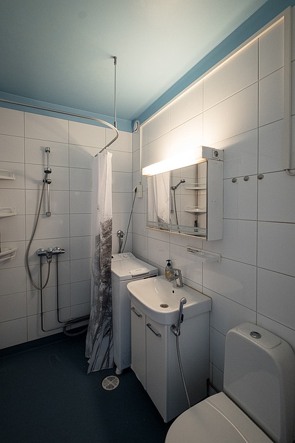 - Allaskaappi, wc-istuin, pesukoneliitäntä, peilikaappi, ja suihku