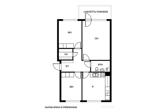 Valoisa ja remontoitu kolmio Väinämänkadulla – lasitettu parveke Äänejärvelle päin