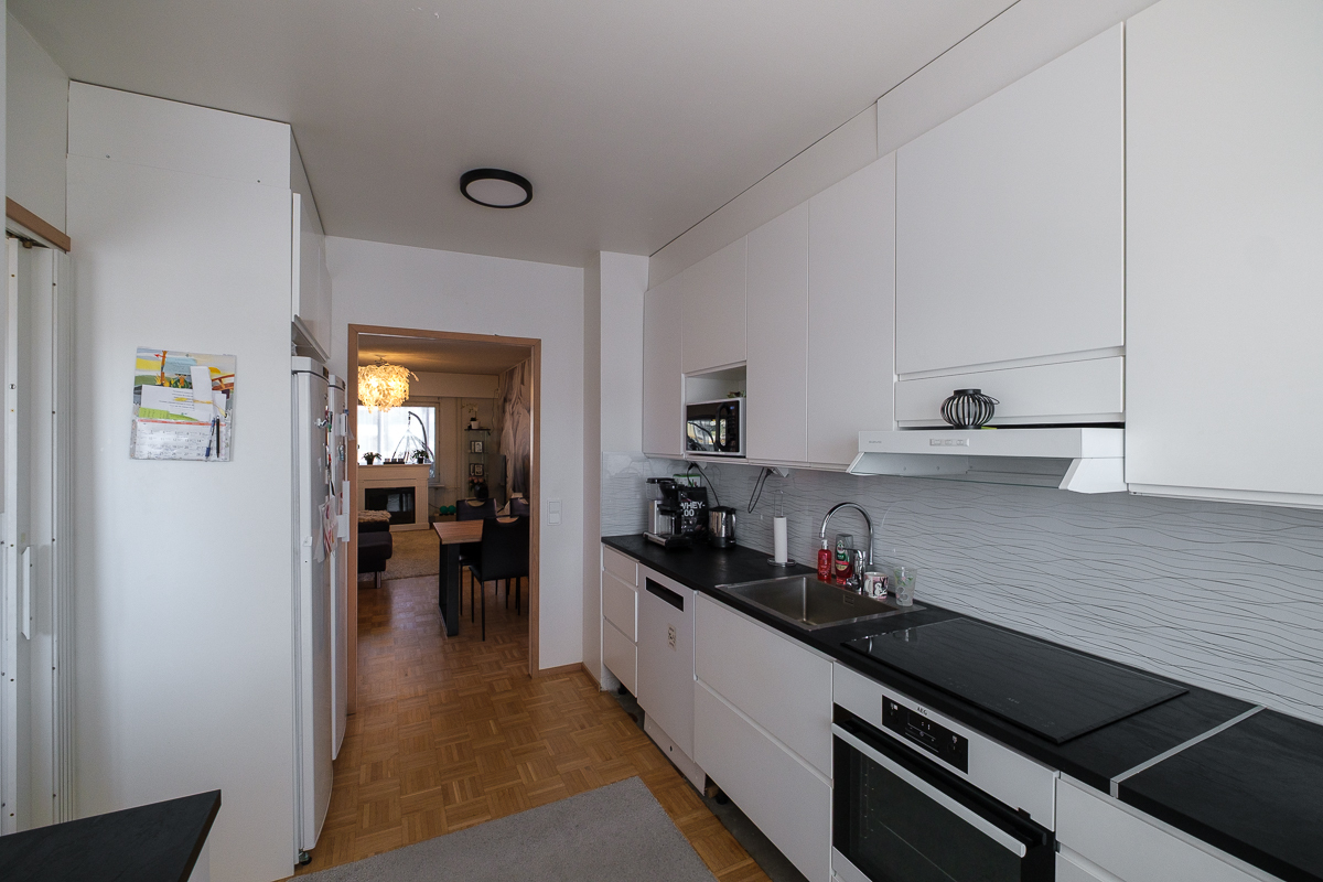Asunnon kruunaa erittäin iso lasitettu parveke, joka toimii lähes lisähuoneena aikaisesta keväästä myöhäiseen syksyyn.