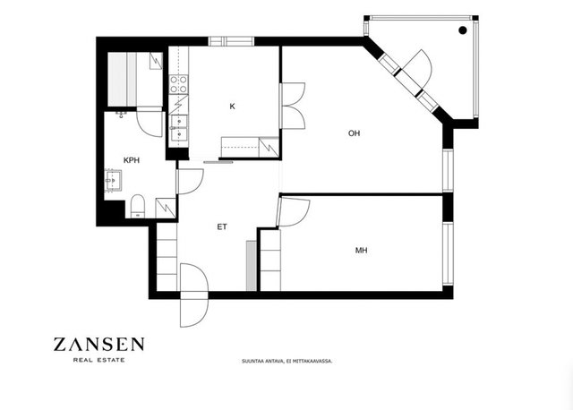 2h, k, kph, s, las. parveke. Yhtiöjärjestyksen mukaan 2 h+k+s.