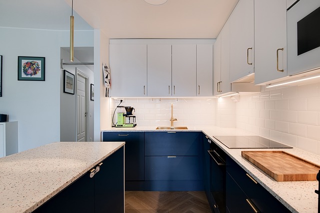 - Puisto. Parvekkeella tamminen ilmalämpöpumpun suojakotelo Himacs kivikomposiitti laskutasolla.