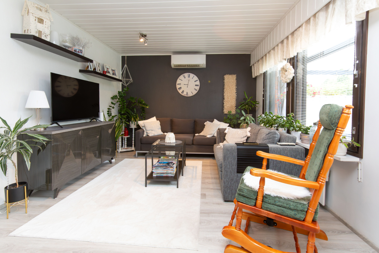 - Lisätietoja sisältyvistä varusteista: ilmalämpöpumppu, keskuspölynimuri, kiinteät valaisimet, lämminvesivaraaja, sälekaihtimet/rullaverhot
