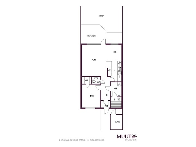 Asunnossa on toimiva pohjaratkaisu ja kunnoltaan se on täysin muuttovalmis. Keittiö on omana tilanaan, mutta ruokailutila yhdistyy kuitenkin mukavasti avaraan oleskelutilaan, jolta on myös kulku viihtyisälle pihalle. Makuuhuone on tilava ja kylpyhuone on remontoitu tyylikkäästi 2021. Oma sauna kruunaa kokonaisuuden! Kohde sopii kaiken ikäiselle asukkaalle mainiosti.