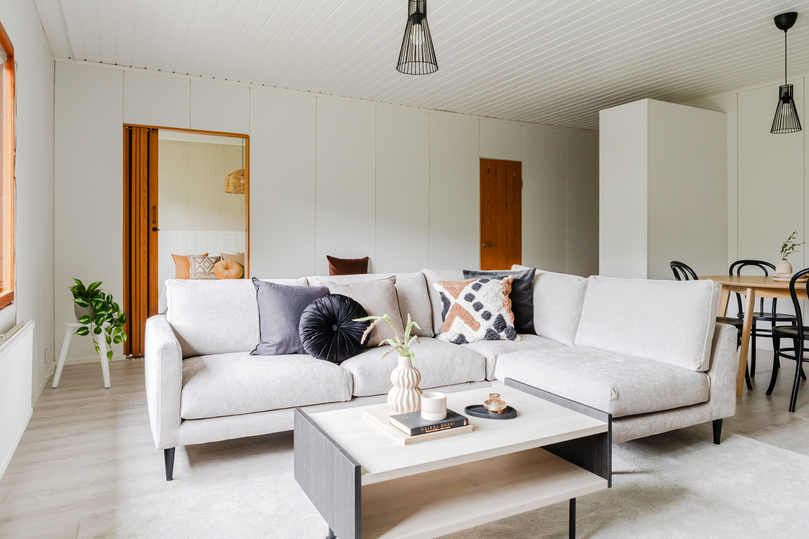 Talon sydän on suuri olohuone, joka yhdistyy sujuvasti ruokailutilan ja keittiön suuntaan. Makuuhuoneita on kolme, joista yhteen on oma kulku myös ulkoa. Säilytystilaa talossa on reilusti. Säilytys- tai harrastutilat jatkuvat poikkeuksellisen suuressa autotallissa, joka tarjoaa unelmapuitteet esimerkiksi autoharrastajalle.