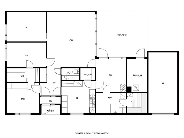 - Pinta-alaa ei ole tarkistusmitattu. Pääpiirustuksen mukaan rakennusala on 175,5 m2.