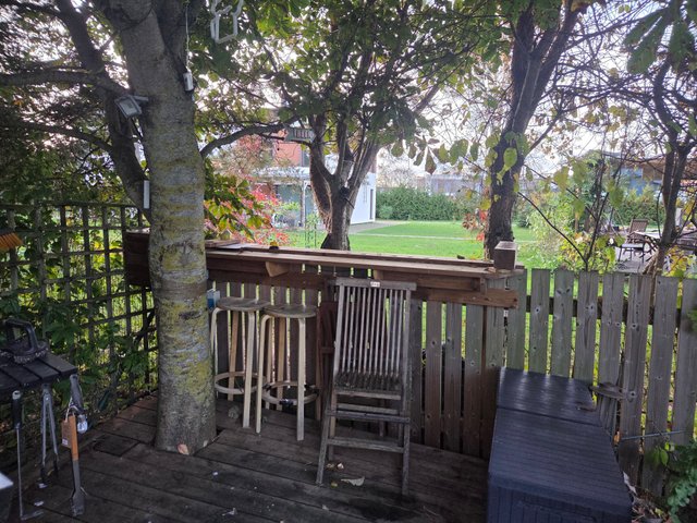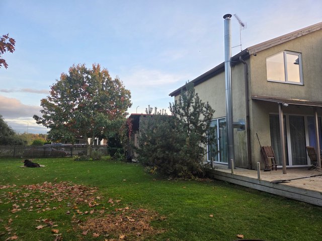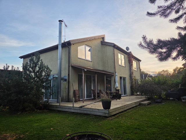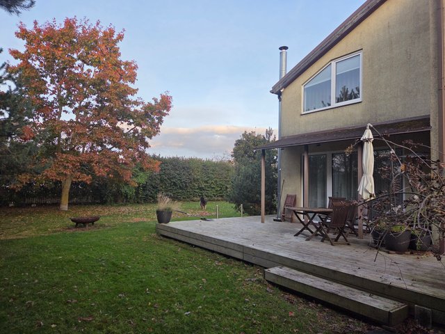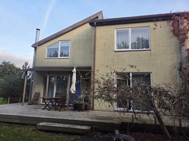 Kõrghaljastusega hooldatud kinnistu. Terrass, kiviparkett ja fassaad vajaks värskendust. Majaosa seest väga heas seisukorras, kulumisjäljed pea minimaalsed.