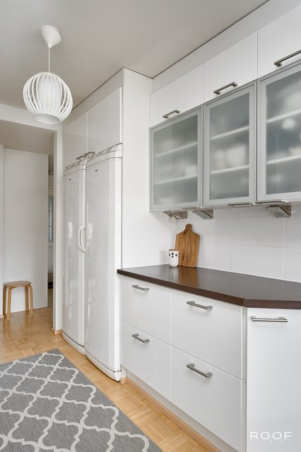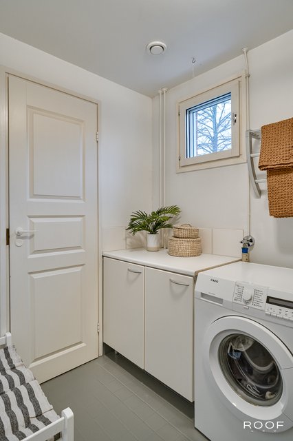 - Lattialämmitys (sähkö), pesukoneliitäntä, pöytätaso, ja kaapistot