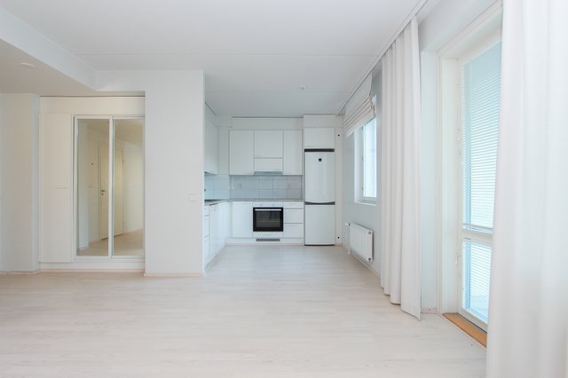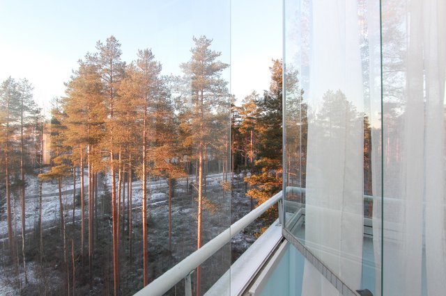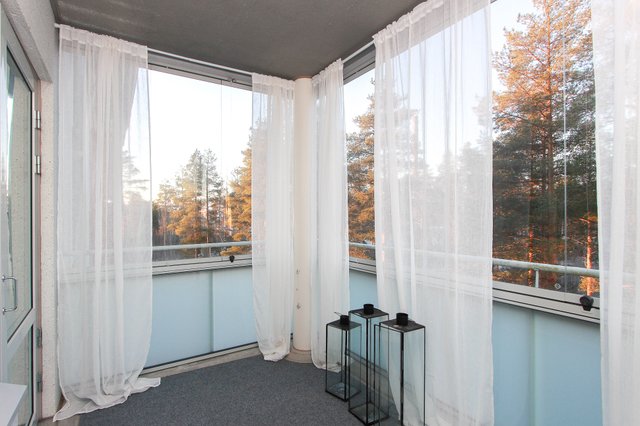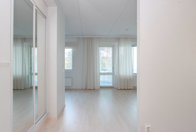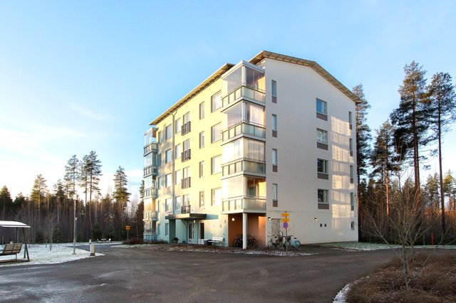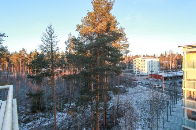 Hyvinkään Tehtaan alueella uudehko avara ja valoisa saunaton kolmio. Asunto sijaitsee ylimmässä viidennessä kerroksessa. Lasitetulta parvekkeelta näkymä metsämaisemaan.