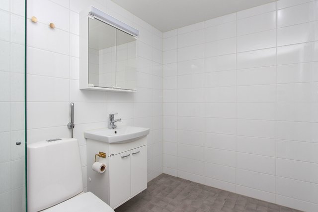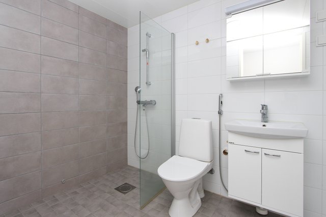 - WC-istuin, suihku, suihkuseinä, pesukoneliitäntä, lattialämmitys, peilikaappi, pesuallas, allaskaappi, ja bidee-suihku