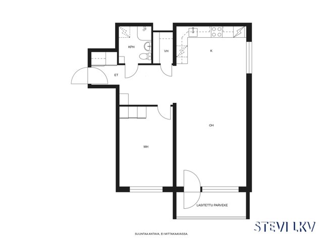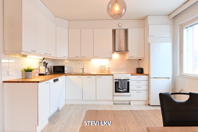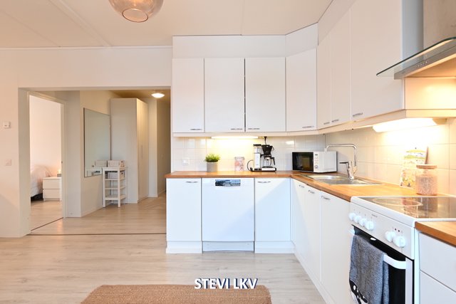 Asunnon pohjaratkaisu on toimiva ja tarjoaa mukavasti tilaa arjen askareisiin. Keittiö on varustettu jääkaappipakastimella ja sähköliedellä, ja kylpyhuoneessa on pesukoneliitäntä sekä modernit kalusteet. Makuuhuoneen yhteydessä on tilava vaatehuone, joka helpottaa säilytystilan hallintaa.