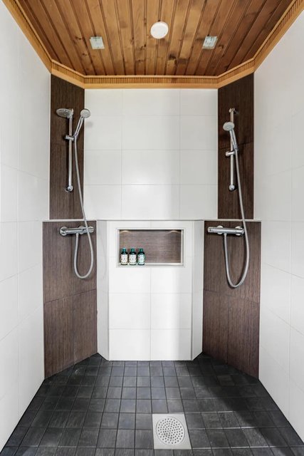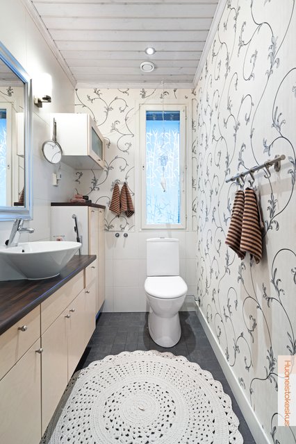 - WC-istuin, suihku (2x), lattialämmitys, bidee-suihku, allaskaappi, ja pesuallas