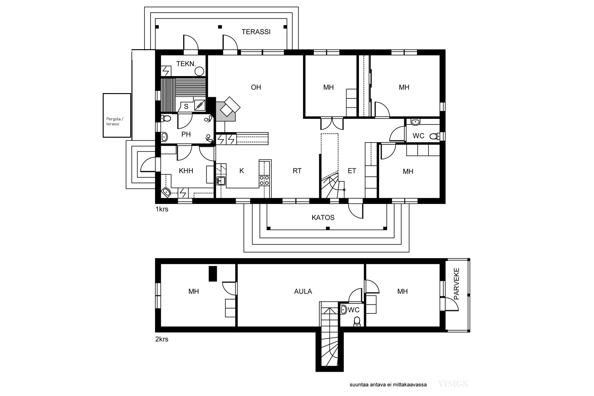 - Kerrosala rakennuspiirustusten mukaan 191 m2.