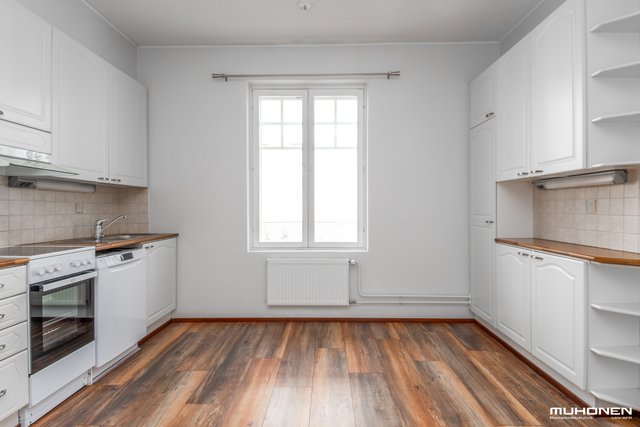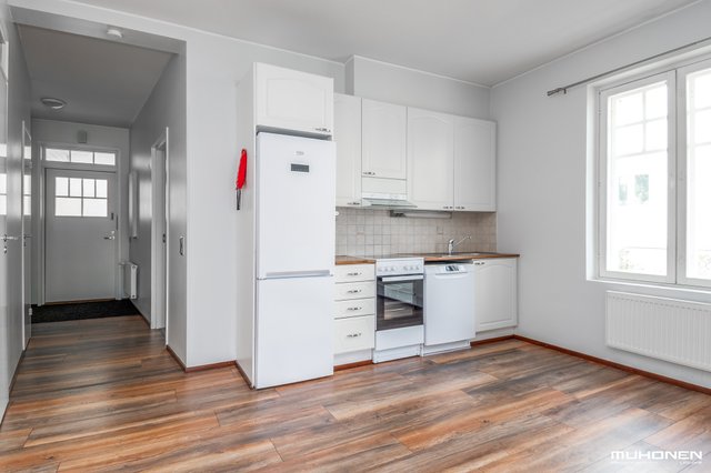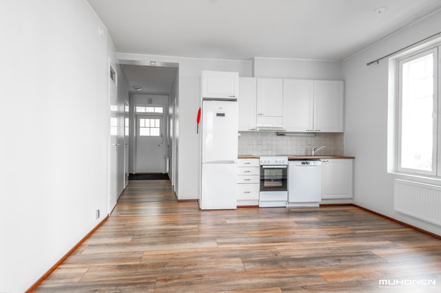 - Jääkaappipakastin, uuni, liesi, liesituuletin, ja astianpesukone