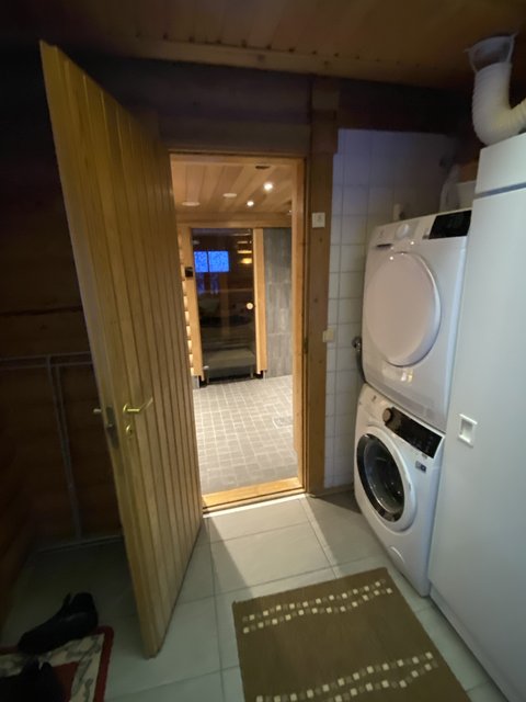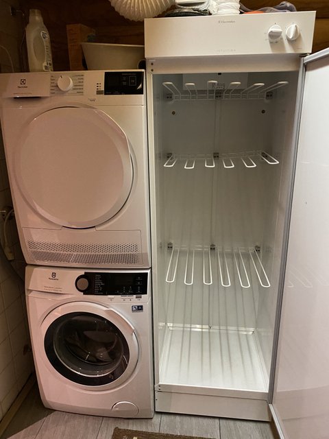 - Pesukone (Husqvarna), kuivausrumpu (Electrolux), kuivauskaappi (Electrolux), tila pesutornille, ja pesukoneliitäntä