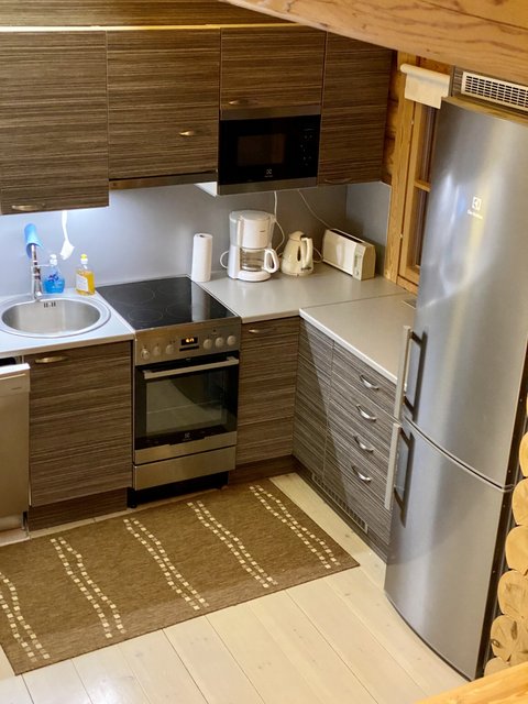 - Jääkaappipakastin (Electrolux), uuni (Electrolux), liesi (Electrolux), mikroaaltouuni (Electrolux), liesituuletin (Electrolux), ja astianpesukone (Electrolux)