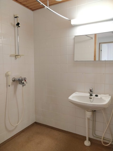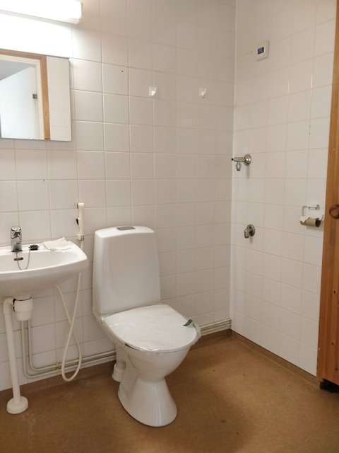 - WC-istuin, suihku, pesukoneliitäntä, lattialämmitys, pesuallas, ja bidee-suihku