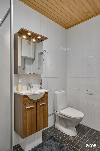 - Peilikaappi, pesuallas, allaskaappi, bideesuihku, wc-istuin, suihkuseinä, suihku, pk-liitäntä.