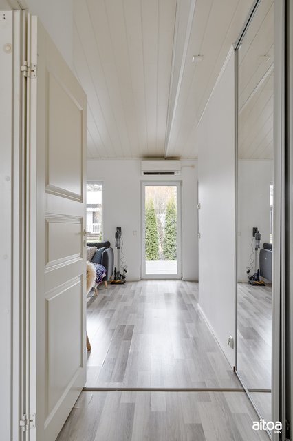 - Eteisen- ja makuuhuoneen liukuovikaapisto, huoneistokohtainen varasto.