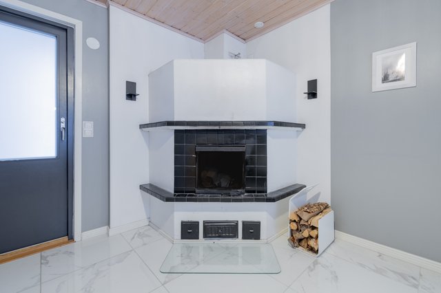 - Takapihalla terassi, jonne käynti takkahuoneesta
