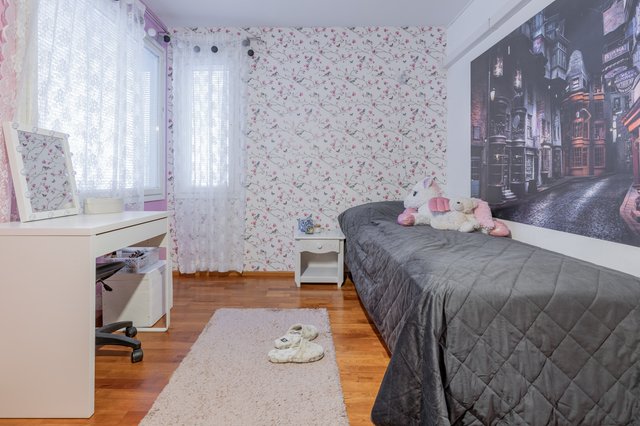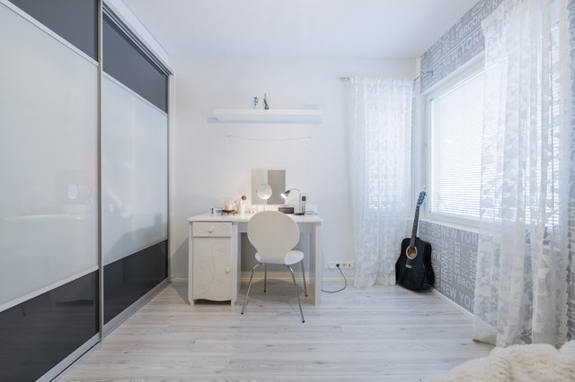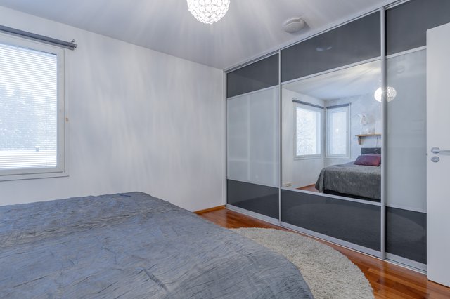 - Alakerrassa yksi makuuhuone, jossa laminaattilattia, yläkerrassa kaksi makuuhuonetta, joissa parkettilattia