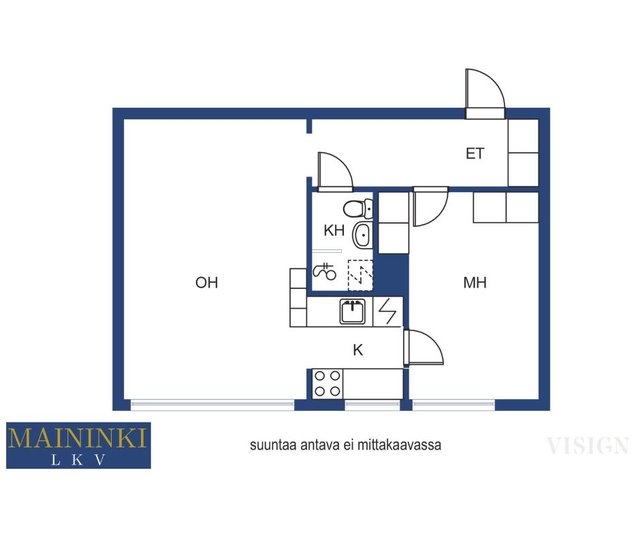 - Jääkaappipakastin, erillisuuni, astianpesukone, liesituuletin (suodatinmallinen), ja liesi (induktio)