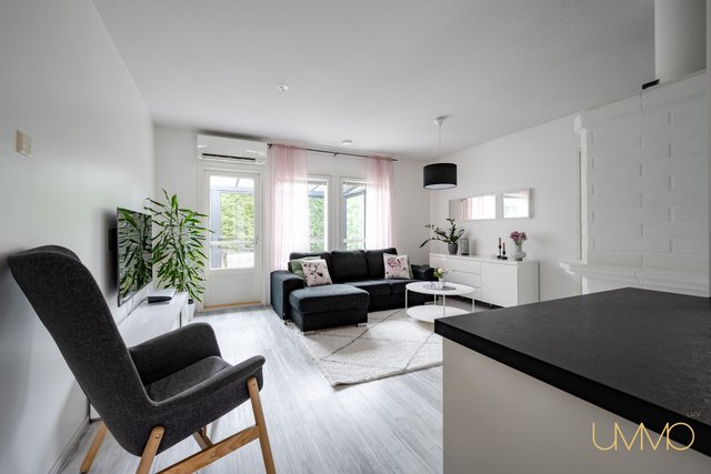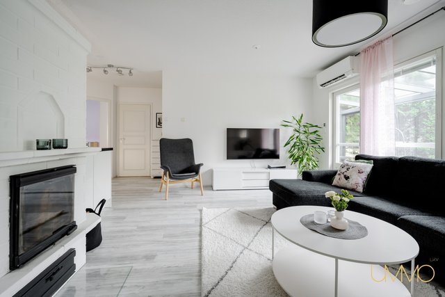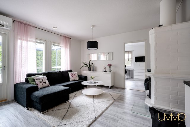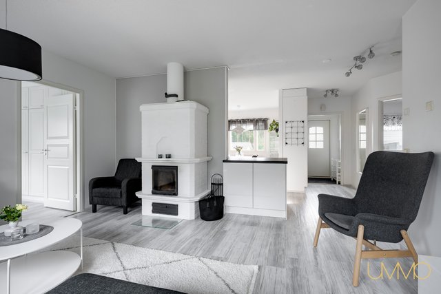 - Ilmalämpöpumppu 2018. Varaava takka. Seinäpinnat maalattu ja vinyylikorkki asennettu 2018. Olohuoneesta kulku lasitetulle terassille (2015).