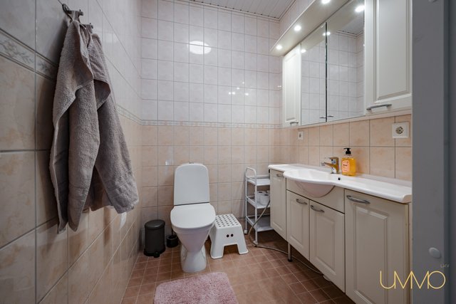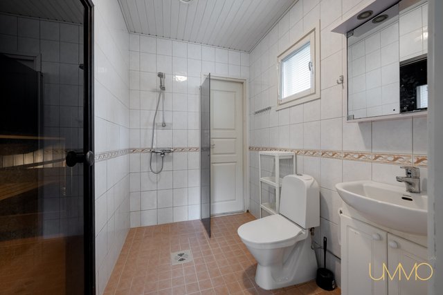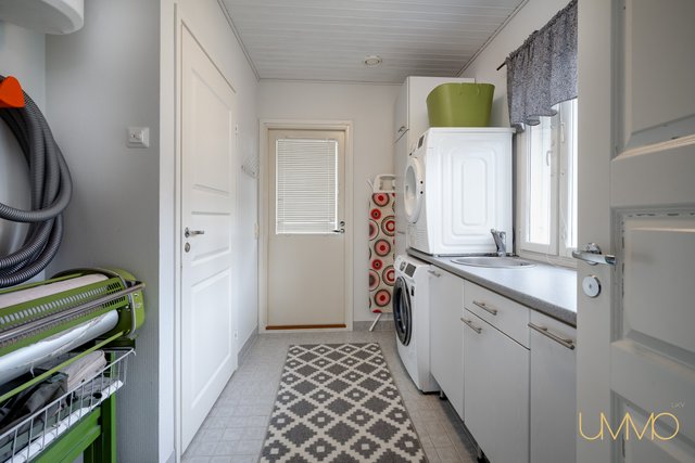 - Pesukoneliitäntä, lattialämmitys, pesuallas, lattiakaivo, tila pesutornille, ja keskuspölynimuri