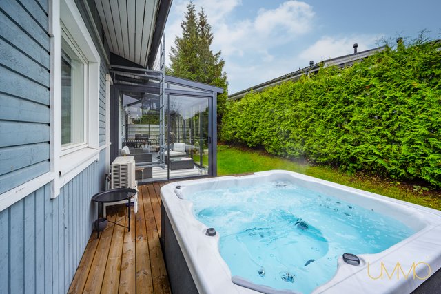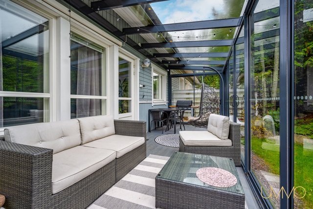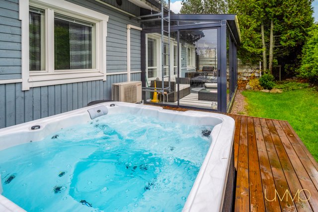 - Osittain lasitettu parveke. Takaterassi tehty 2023 ja etuterassi 2021. Cello poreallas 2023.