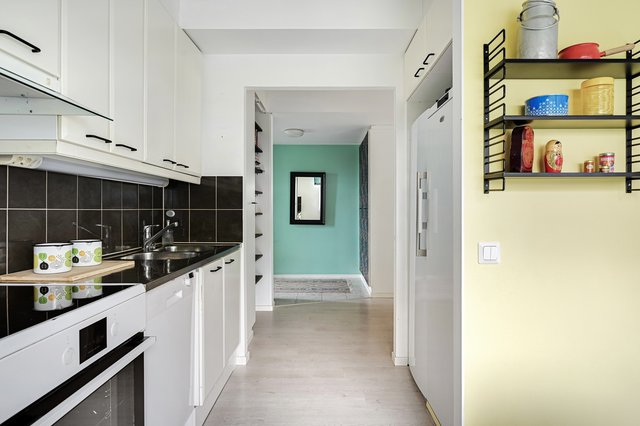 Käytännöllisen pohjaratkaisun ansiosta asunto on toimiva ja sen molemmat makuuhuoneet ovat kunnon kokoiset ja olohuonetta voi pitää hyvinkin tilavana, jota lisää vielä sen jatkeena oleva tilava parveke. Vaaleakalusteisessa keittiössä on mukavasti ruuanlaitto- ja säilytystilaa. Pesutilaan mahtuu hyvin myös pesutorni ja asunnon omassa saunassa on mukava ottaa löylyt. Asunnossa on runsaasti kaappitilaa.