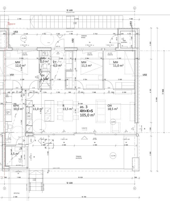 - Jokaisen asunnon: - Huoneistoala 105m2 - Autotalli n. 20m2 - Lämmin varasto autotallin yhteydessä n. 6,5m2 - Puolilämmin varasto asunnon edustalla n. 2,5m2