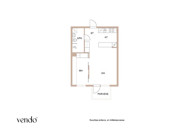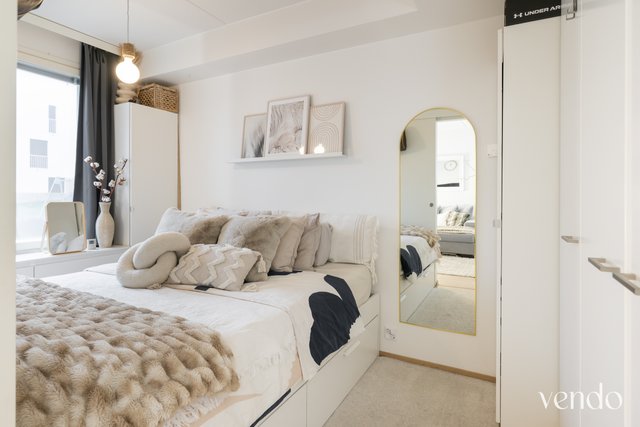 Asunnon avara keittiö-olohuone luo valoisat ja toimivat puitteet arkeen. Keittiössä on hyvin työskentelytilaa, ja oleskelutilasta on käynti parvekkeelle. Makuuhuoneessa on tilaa myös leveämmällekin sängylle, ja kylpyhuone on moderni ja tilava.