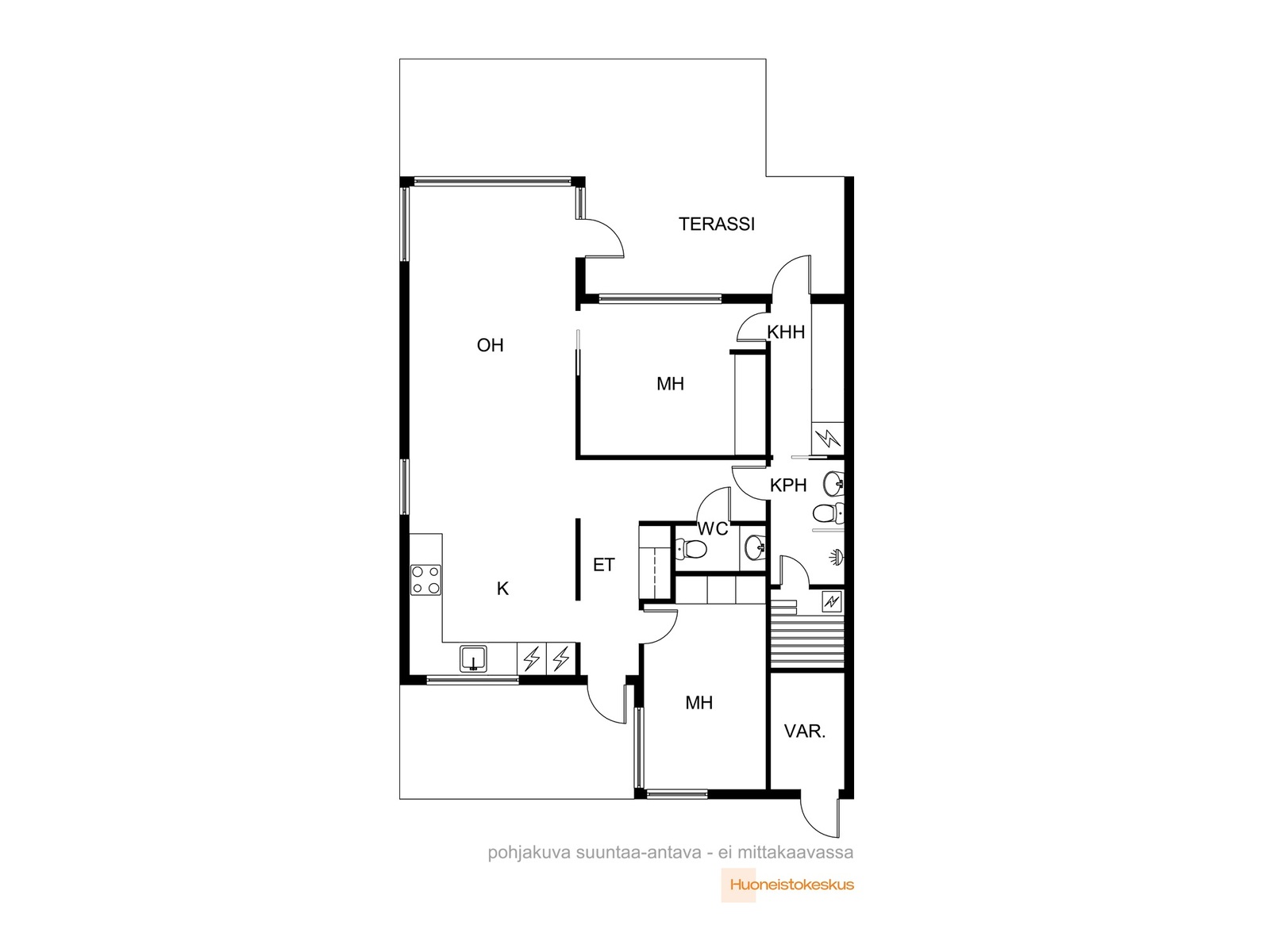 Kt, oh, 2mh, khh, kph, sauna, wc, erillinen wc, terassi, varasto