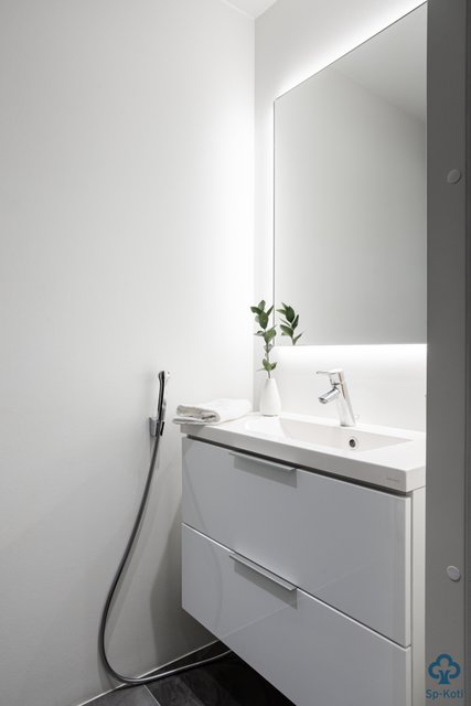 - 1 kpl. Seinämallinen wc-istuin, valopeili, allaskaappi ja lattialämmitys. Lattia laattaa ja seinät maalattu sekä tehosteseinä laattaa.