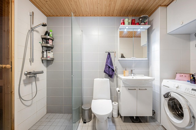 - Suihku, allaskaappi, suihkuseinä, wc-istuin, peilikaappi, pesukoneliitäntä, ja kiinteät valaisimet