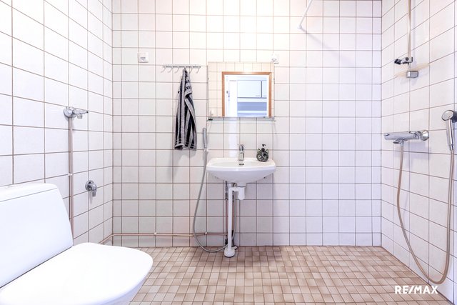 - Suihku, wc-istuin, pesukoneliitäntä, peili, ja pesuallas