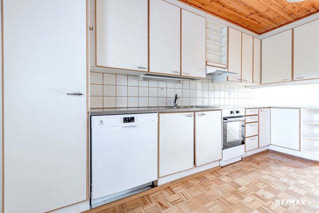 - Jääkaappipakastin, liesi (Liesi uusittu 2023), ja liesituuletin