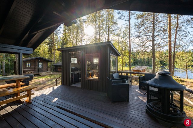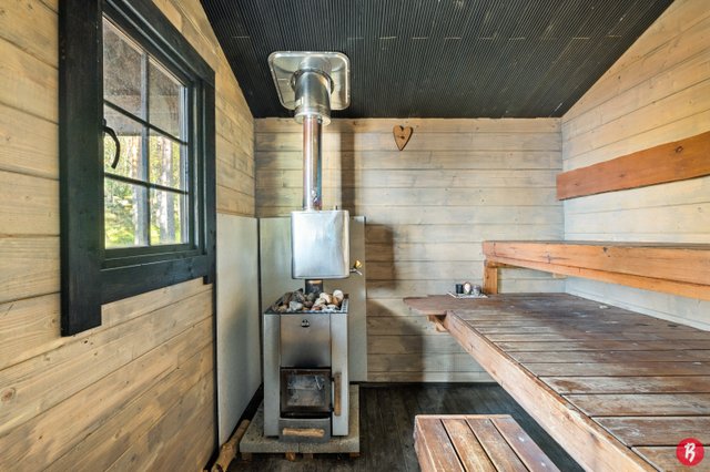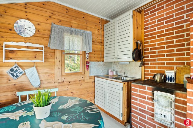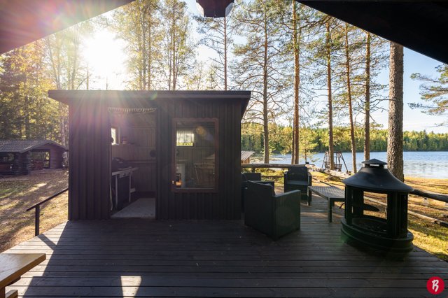 Mökki on kompakti, mutta hyvin suunniteltu. Entinen sauna ja pukuhuone on muutettu makuuhuoneeksi, mikä lisää tilan toimivuutta. Pihasauna tarjoaa perinteistä suomalaista saunakokemusta puukiukaan lämmössä. Avoterassilla sijaitseva kesäkeittiö kutsuu nauttimaan kesäilloista ja omalta rannalta pääsee pulahtamaan virkistävään veteen.