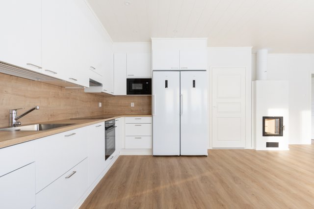 - Jääkaappipakastin, liesi, astianpesukone, ja erillisuuni