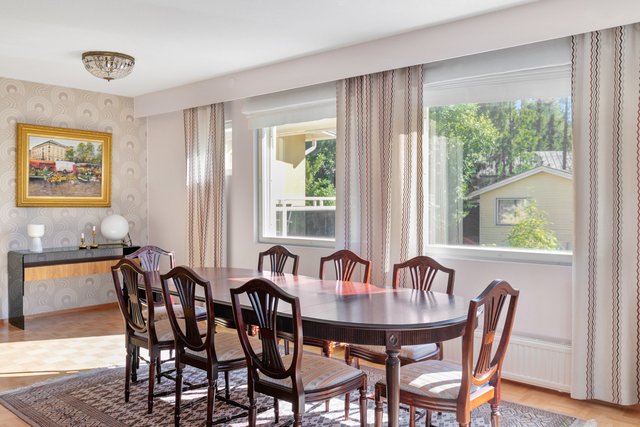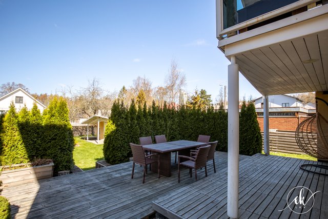Tämä upea omakotitalo sijaitsee arvostetulla ja rauhallisella Marjaniemen alueella Helsingissä. Vuonna 1998 laajennettu ja peruskorjattu koti tarjoaa tilaa ja mukavuutta isommallekin perheelle. Asunnon 265 neliömetriä käsittää seitsemän huonetta, ruokailutilan, saunaosaston sekä tilavan kodinhoitohuoneen, josta on suora käynti aurinkoiselle pihalle.