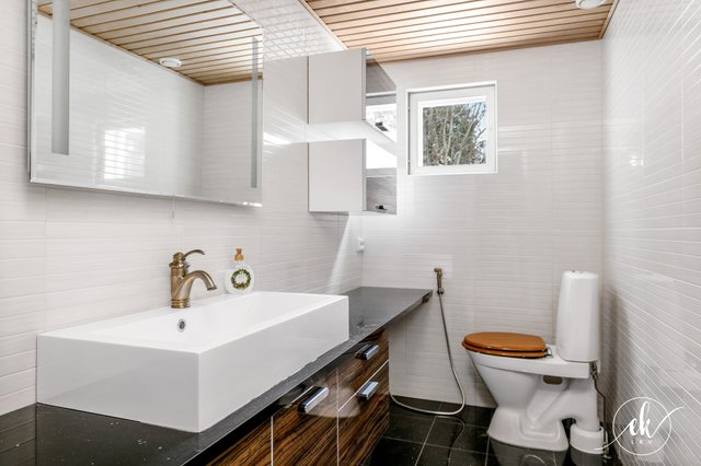 - Pesuhuoneessa poreamme. Kaikki saniteettitilat kivitasoineen on uusittu vuonna 2011.