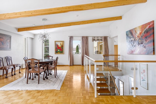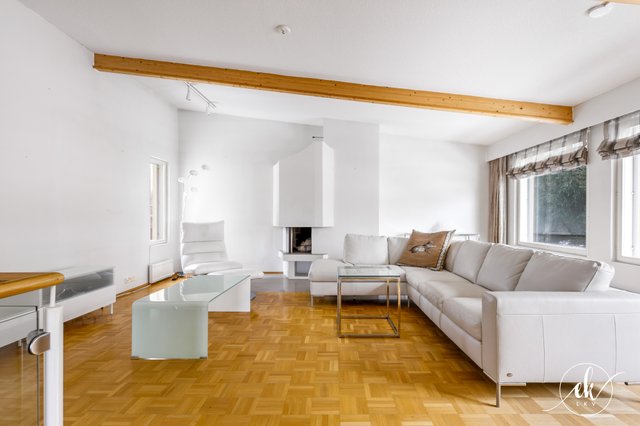 - Olohuoneessa on korkea viistokatto, joka tuo avaruutta. Edustava, valkoinen avotakka. Takan toimivuus tarkastettava ja nuohous tehtävä ennen käyttöönottoa.