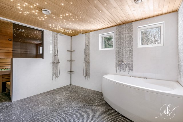 - Saunaosastolla on kaunis tähtitaivaskatto ja sauna on todella tilava.