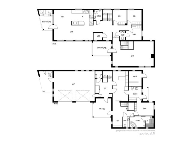7h, rt, saunaosasto,khh,1 kph, 2 erill. wc, kylmiö, kahden auton autotalli, lämmin var. ja ulkovar.